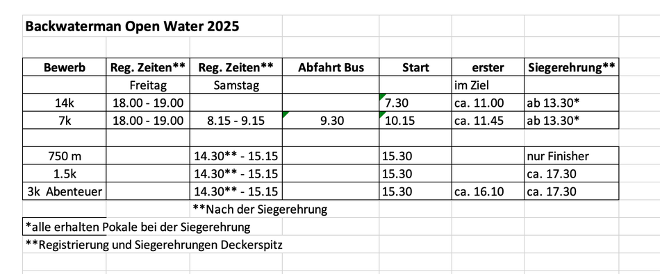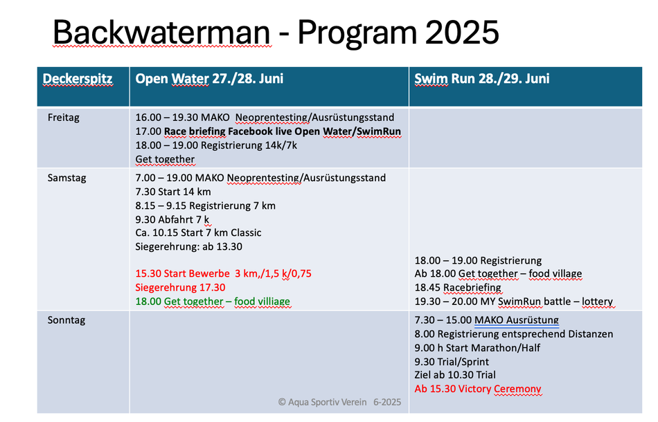 Aktuelle Informationen Backwaterman Open Water, 25.6.