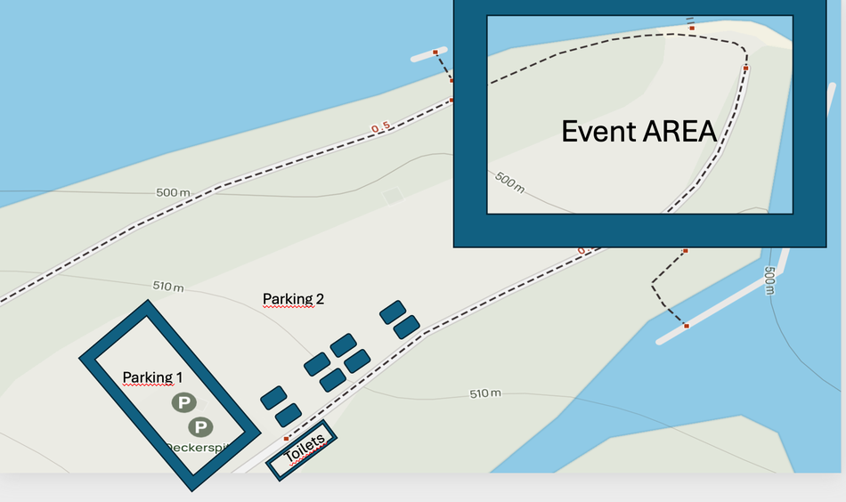 Toiletten: sind am Rande des Parkplatzes 1 aufgestellt