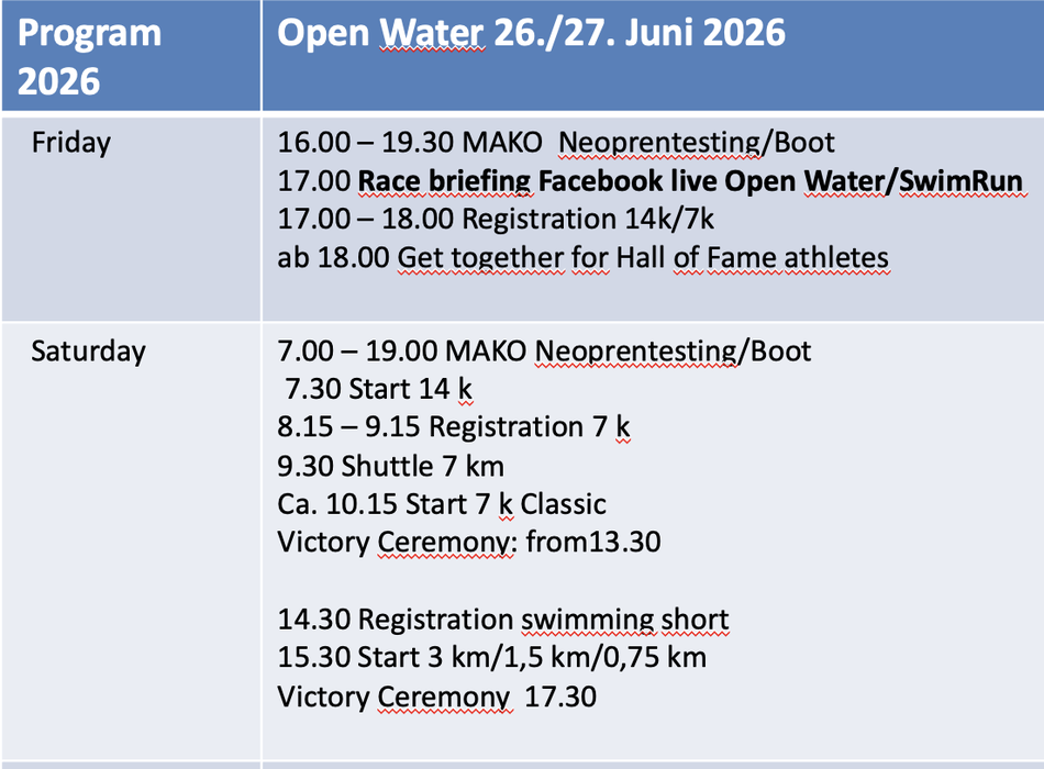 Due to the high demand, the 14 km marathon distance with new start and finish on the bathing meadow Deckerspitz will be swum in 2025 without a compulsory accompanying boat, but again with mandatory buoys.